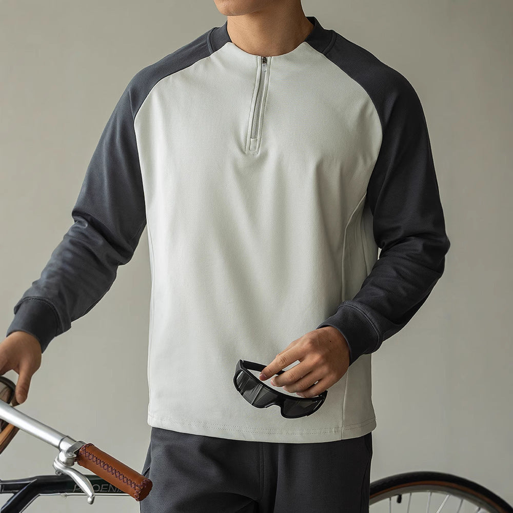 Sportliches Kontrastshirt mit Zipper – Langarm