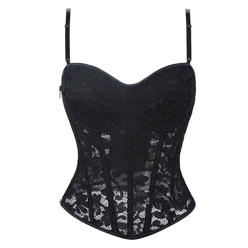 Taillenenge Push-up-Korsett mit Stahlring und Brustpolster, kleines Sling-Fischgrätenkorsett