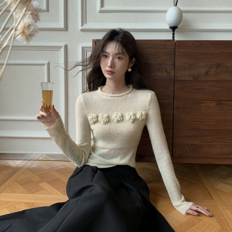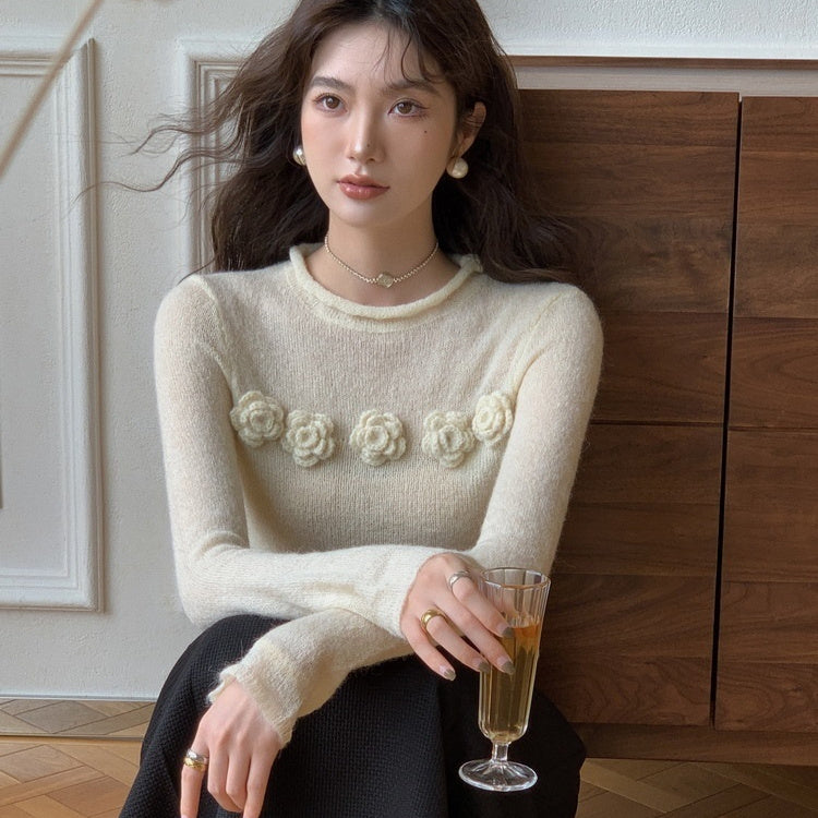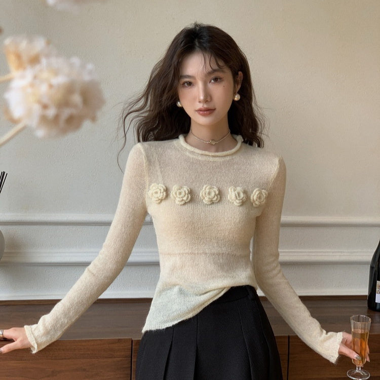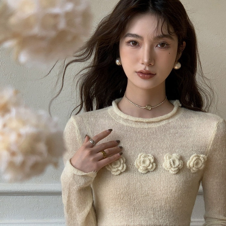 Zarter Damen-Stricktop mit Blütendetails & Rundhals