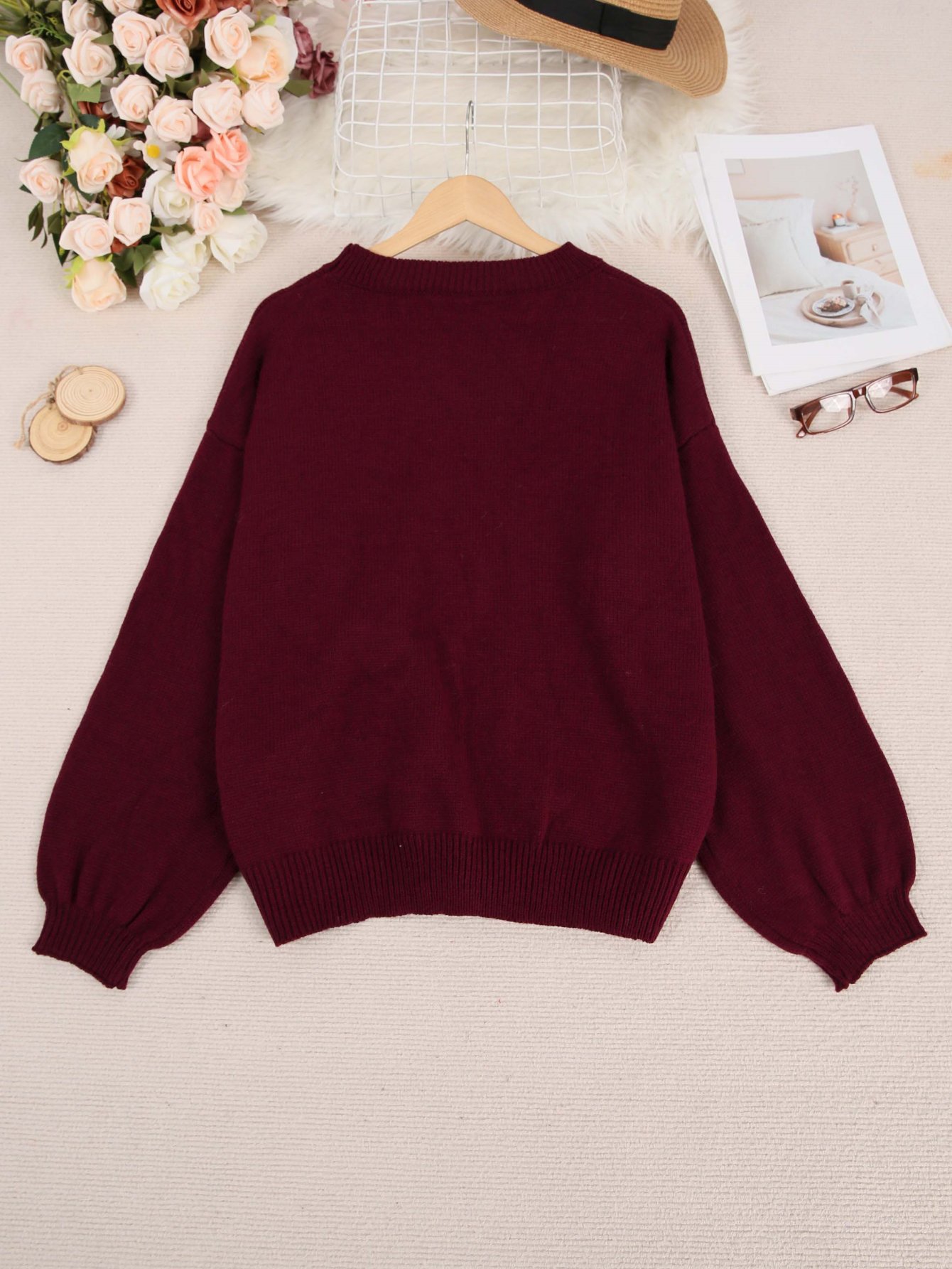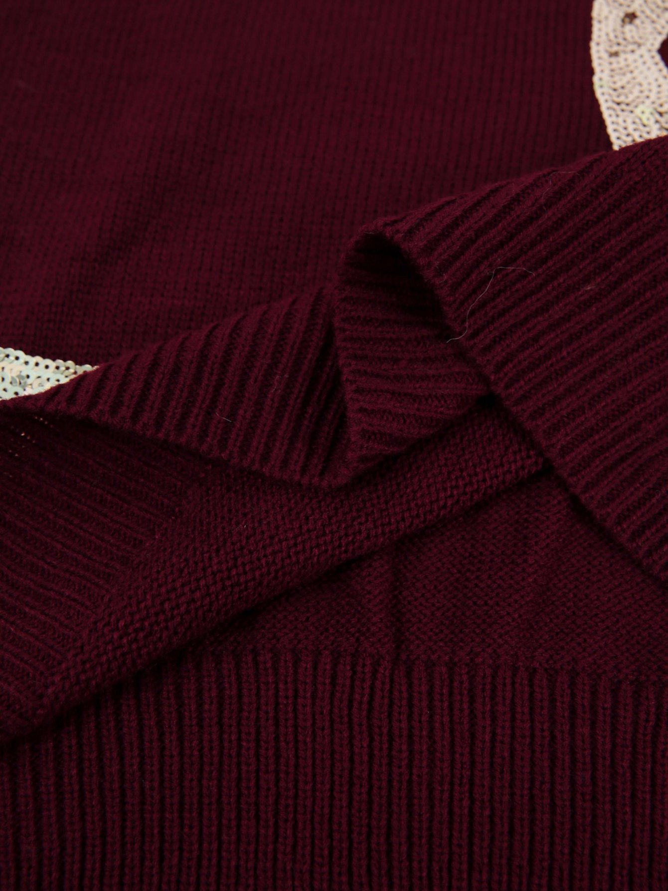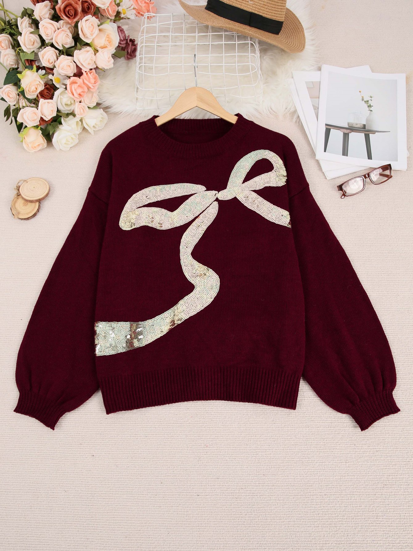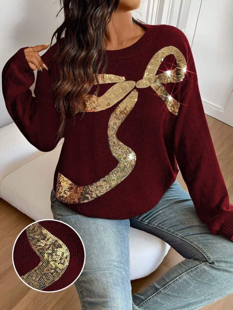 Eleganter Paillettenpullover in Übergröße mit Rundhalsausschnitt, Schleife und Paillettenstickerei