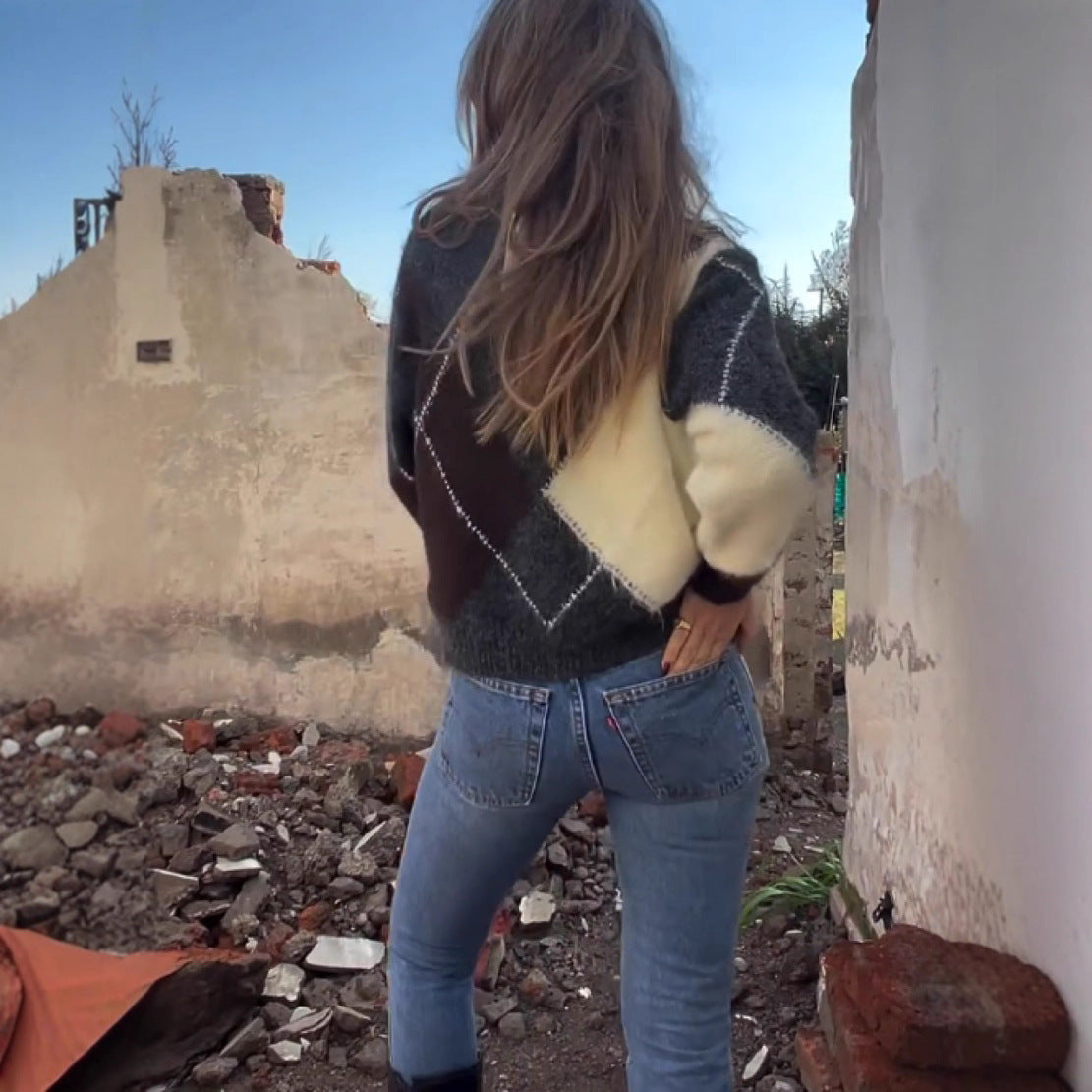 Kurz geschnittener Damen-Karopullover – Street-Fashion Sweater, S–L